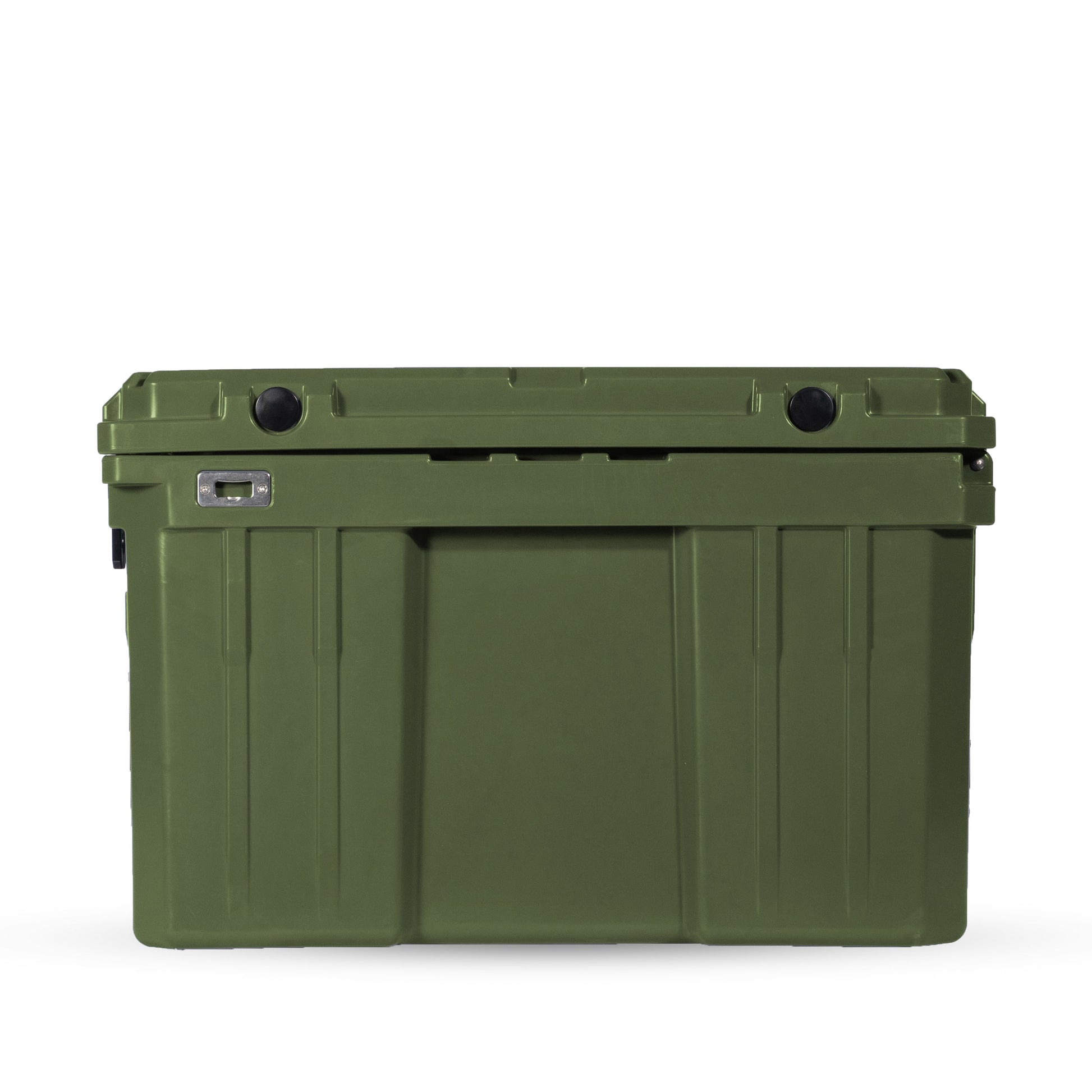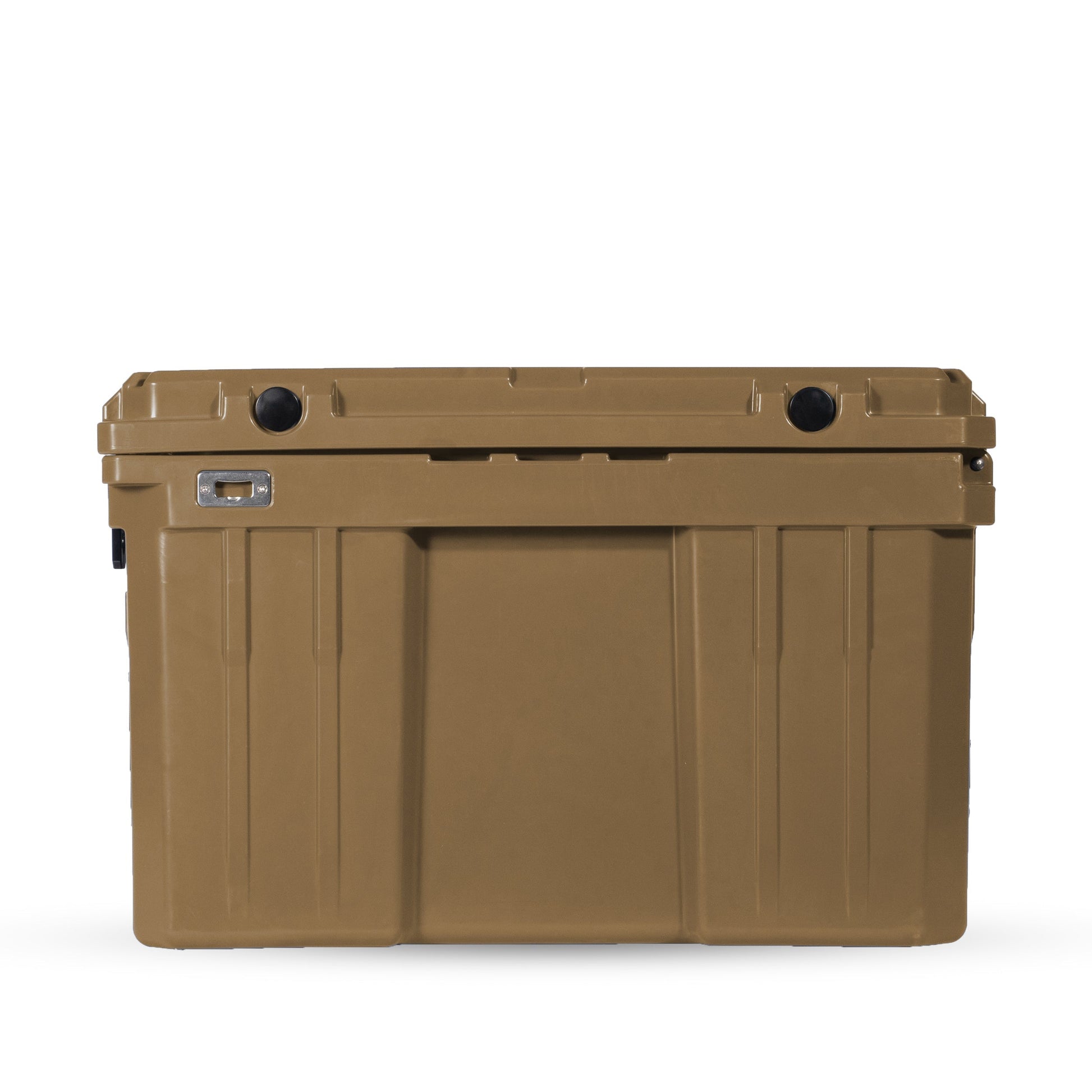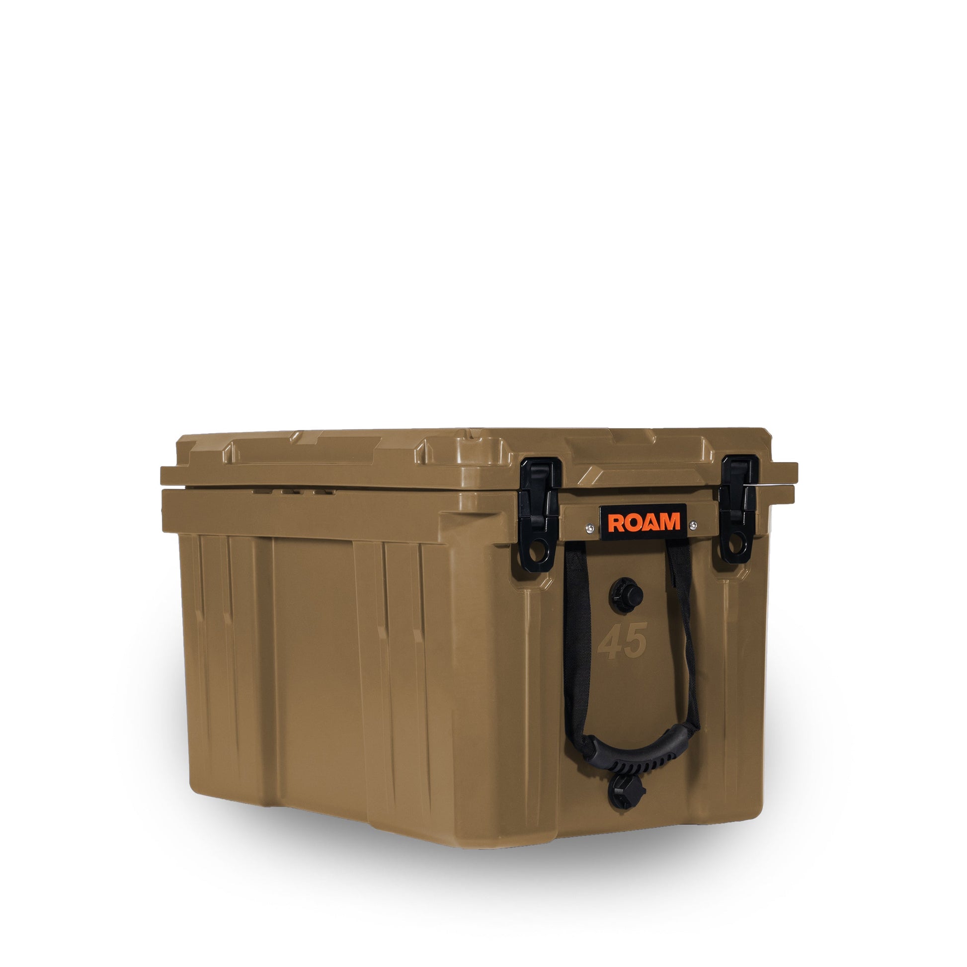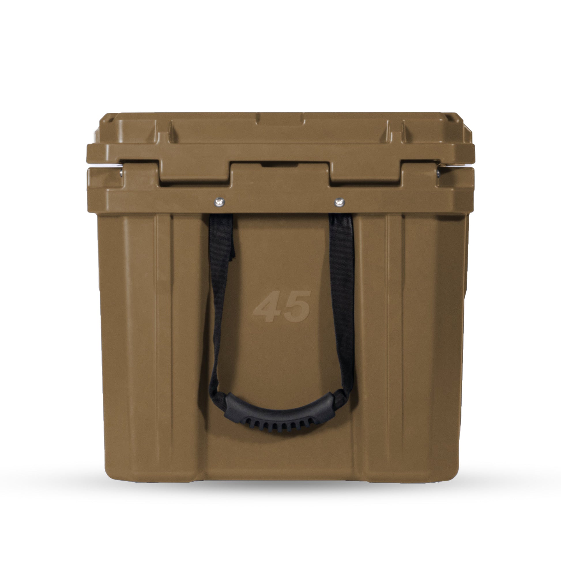 The 45qt Rugged Cooler is one of the most versatile sizes for a cooler and features a unique end-opening hinge. The end-opening hinge makes it easy to store in the back of your vehicle and access your cold goods when you need it.