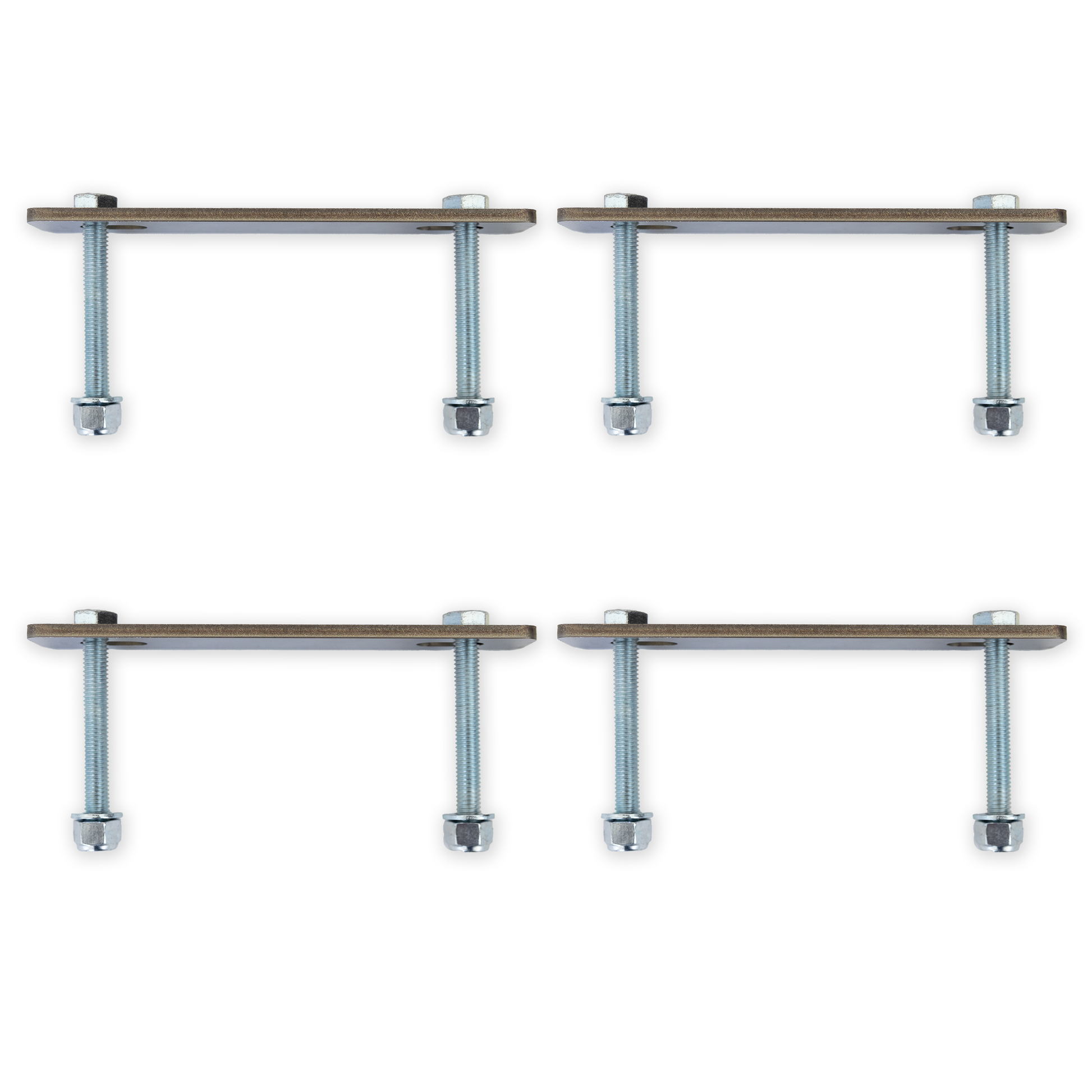 If you have a roof rack or crossbars that you want to mount your Rugged Mounts on to but you don't have channels to slide carriage bolts into, then this is the hardware that you will need. The long bolts and bar make it so you can "sandwich plate" mount around your bars or rack. This kit comes with 4 plates and 8 bolts, washers, and nuts.