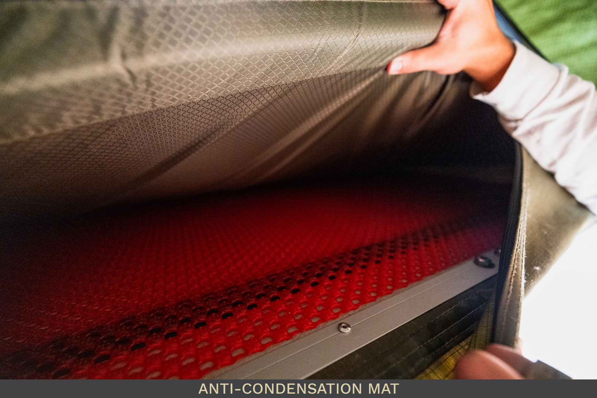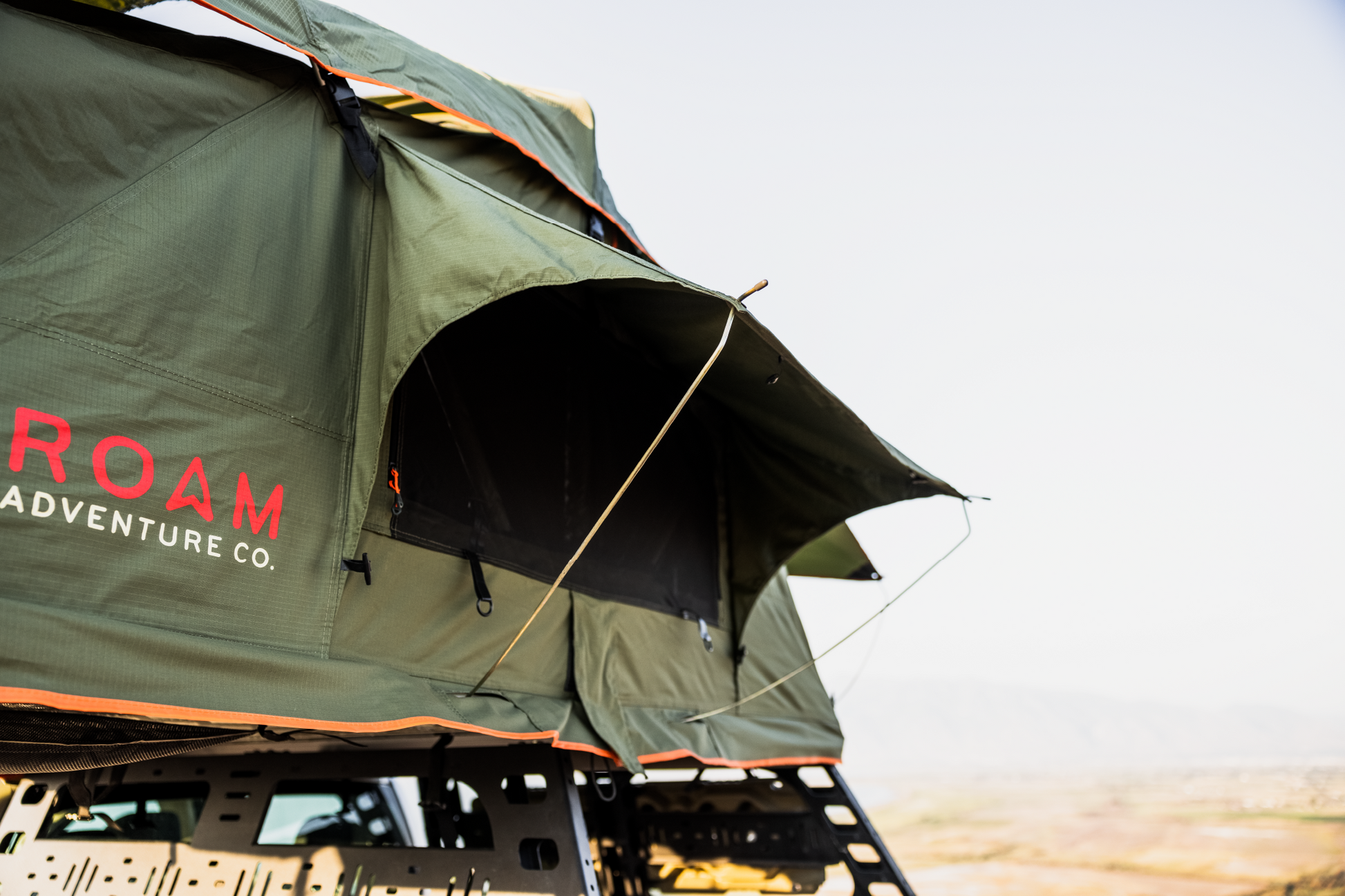 The ROAM Vagabond is a durable foldout rooftop tent that sleeps 2-3 people on top of a high-density foam mattress. This all-weather tent can be easily installed on a variety of roof racks and takes minutes to pitch, wherever you find yourself at the end of the day. The tent is made of rugged polycotton ripstop fabric with a robust diamond weaved nylon rainfly. Enter your new home away from home via a secure yet lightweight telescoping aluminum ladder. The 2 skylights and surrounding windows can be unzipped for maximum views of the night sky and morning sunrise.